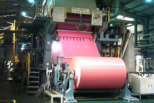 YANKEE DRYER 에서 건조된 후 POPE REEL에 권취되어 종이가 생산된다.